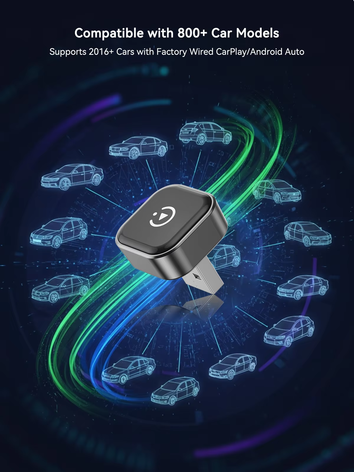. This wireless carplay and Android adapter only fit for cars from 2017 with OEM Factory Wired CarPlay & Android Auto; 2. Please make sure your car has the wired Apple CarPlay or Wired Android Auto function;3. Wi-Fi and Bluetooth must be turned on at the same time and not occupied by other devices